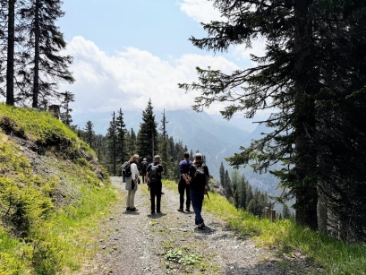 Am Sonntag traf man sich nach dem Frühstück zu einer Rundwanderung. Die kundige Wanderleiterin Viktoria Spinas erzählte Wissenswertes aus der Lokalgeschichte und konnte Spannendes von Pflanzen und Tieren der Alp Flix berichten. In Forschungsprojekten werden jeweils die vorhandenen Arten zwischen Sur und der Tschima da Flix bestimmt und wissenschaftlich dokumentiert. Im Sommer lebt die Alp vom Tourismus und Viehwirtschaft, es werden auch Rinder aus dem Unterland auf der Alp übersommert. Im Winter hingegen kehrt schnell die Ruhe ein. Nur etwa zehn Personen überwintern da oben – man ist unter sich. Schneebedingt ist die Alp ziemlich abgeschnitten von der Aussenwelt, der Schneetöff ist das Transportmittel der Wahl. Die Kinder gehen mit dem Schlitten nach Sur zur Schule.
